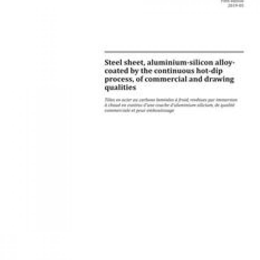 Steel sheet, aluminium-silicon alloy-coated by the continuous hot-dip process, of commercial and drawing qualitiesstandard by International Organization for Standardization, 06/01/2019