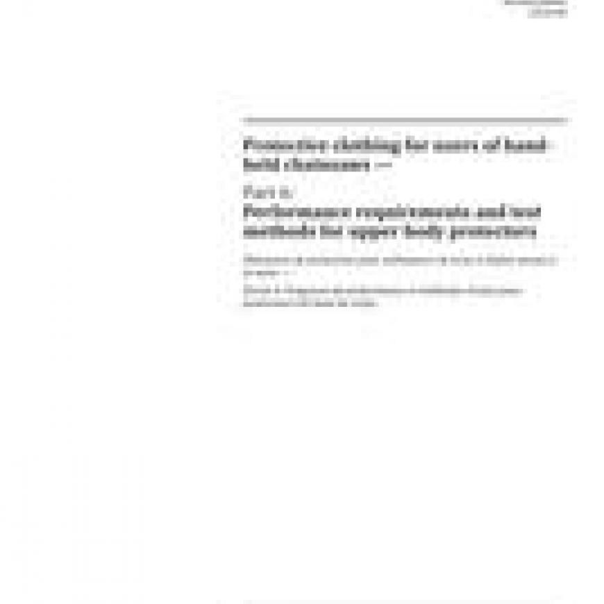 ISO 11393-6:2018 specifies requirements for the protection offered by upper body protectors against cutting by a hand-held chain-saw.
