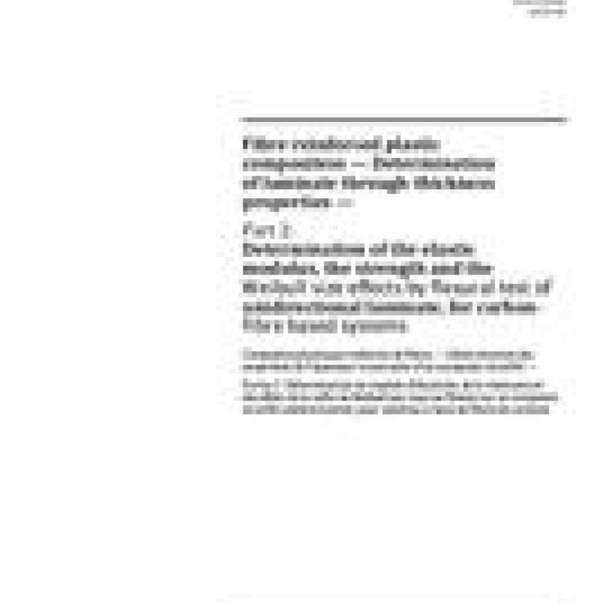 ISO 20975-2:2018 specifies a flexural test method for determining the through-thickness (out-of-plane) tensile properties of laminated carbon fibre-reinforced plastic (CFRP) composites, including strength, fracture strain, and modulus. This document is applicable to unidirectional CFRP (UD-CFRP) laminates. In addition, the calculation of effective volume is also described due to size effects of the through-thickness tensile strength.