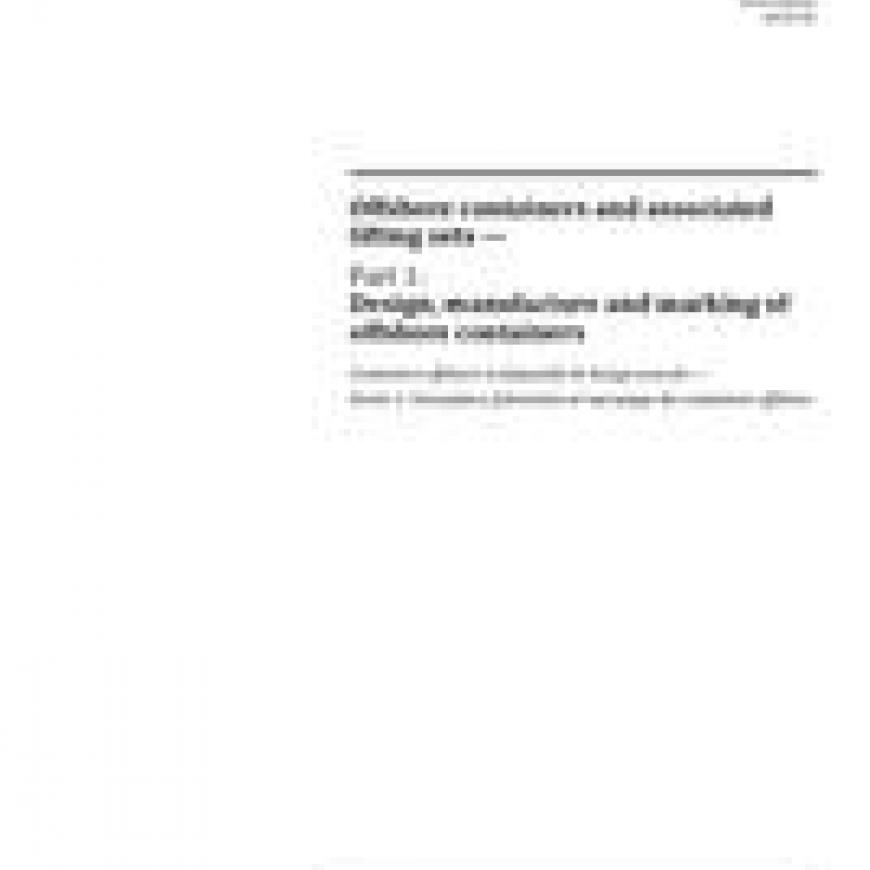 This document specifies requirements for the design, manufacture and marking of offshore containers with a maximum gross mass not exceeding 25 000 kg, intended for repeated use to, from and between offshore installations and ships.