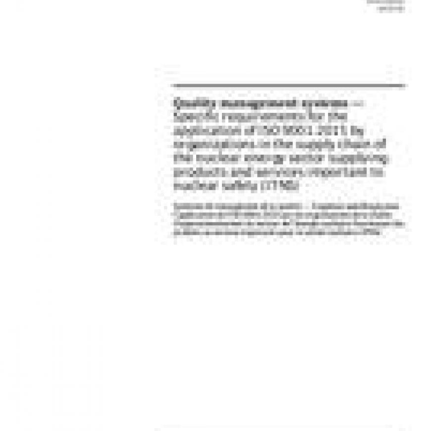 ISO 19443:2018 Quality management systems - Specific requirements for the application of ISO 9001:2015 by organizations in the supply chain of the nuclear energy sector supplying products and services important to nuclear safety (ITNS)