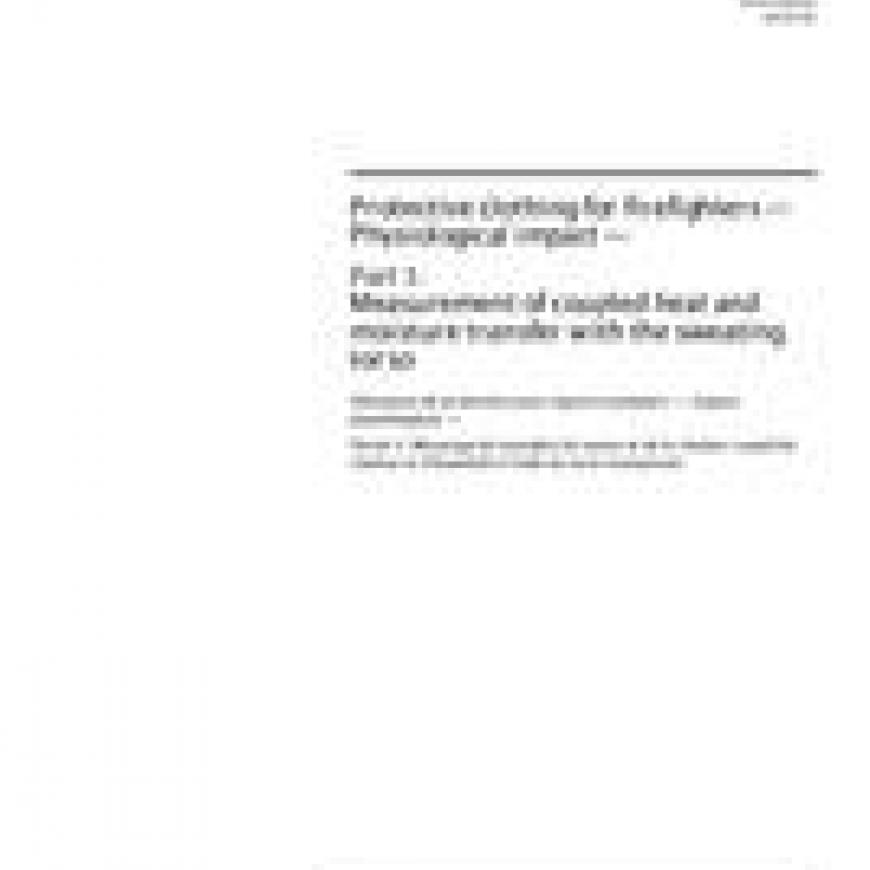 ISO 18640-1:2018 Protective clothing for firefighters - Physiological impact - Part 1: Measurement of coupled heat and moisture transfer with the sweating torso