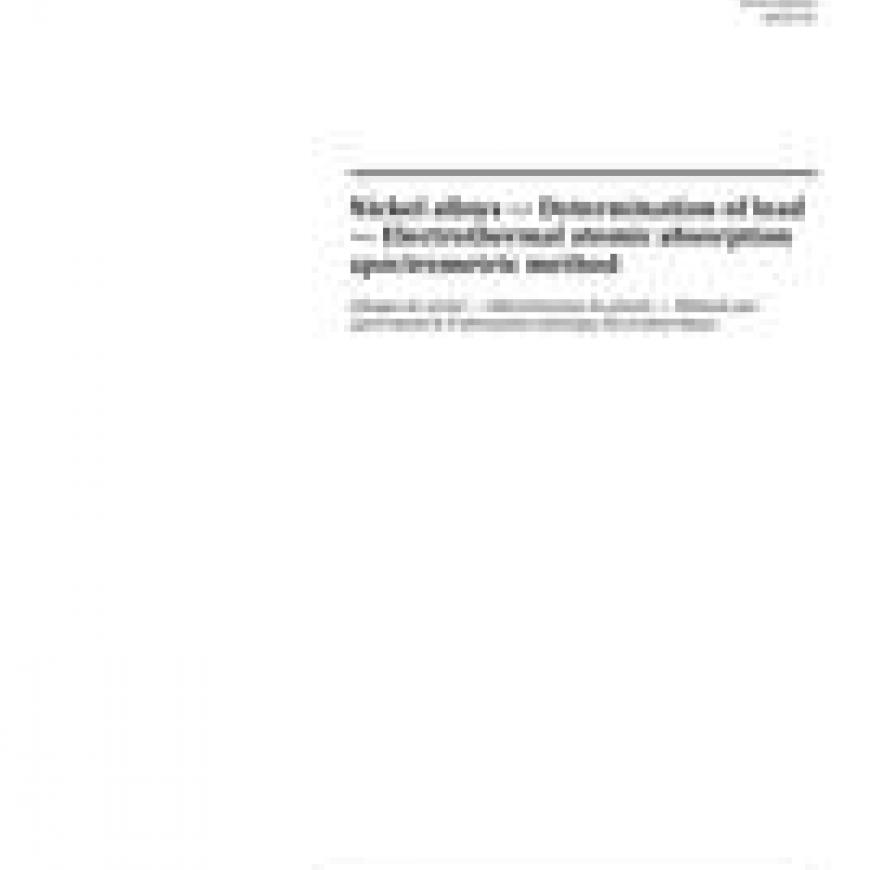 ISO 11437:2018 specifies an electrothermal atomic absorption spectrometric method for the determination of lead in the range of 1 g/g to 10 g/g in nickel alloys.