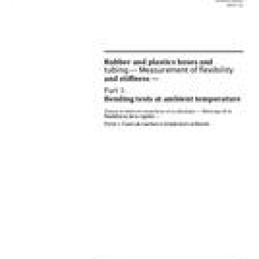 ISO 10619-1:2017 specifies three methods for measuring the flexibility of rubber and plastics hoses and tubing (methods A1, B and C1), where the deformation of the hose or tubing is measured, and two methods for measuring the stiffness (methods A2 and C2) by measuring the force required to bend rubber or plastics hoses or tubing to a specific radius at ambient temperature.