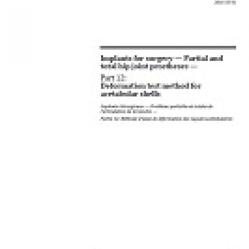 Implants for surgery - Partial and total hip joint prostheses - Part 12: Deformation test method for acetabular shellsstandard by International Organization for Standardization, 10/01/2016