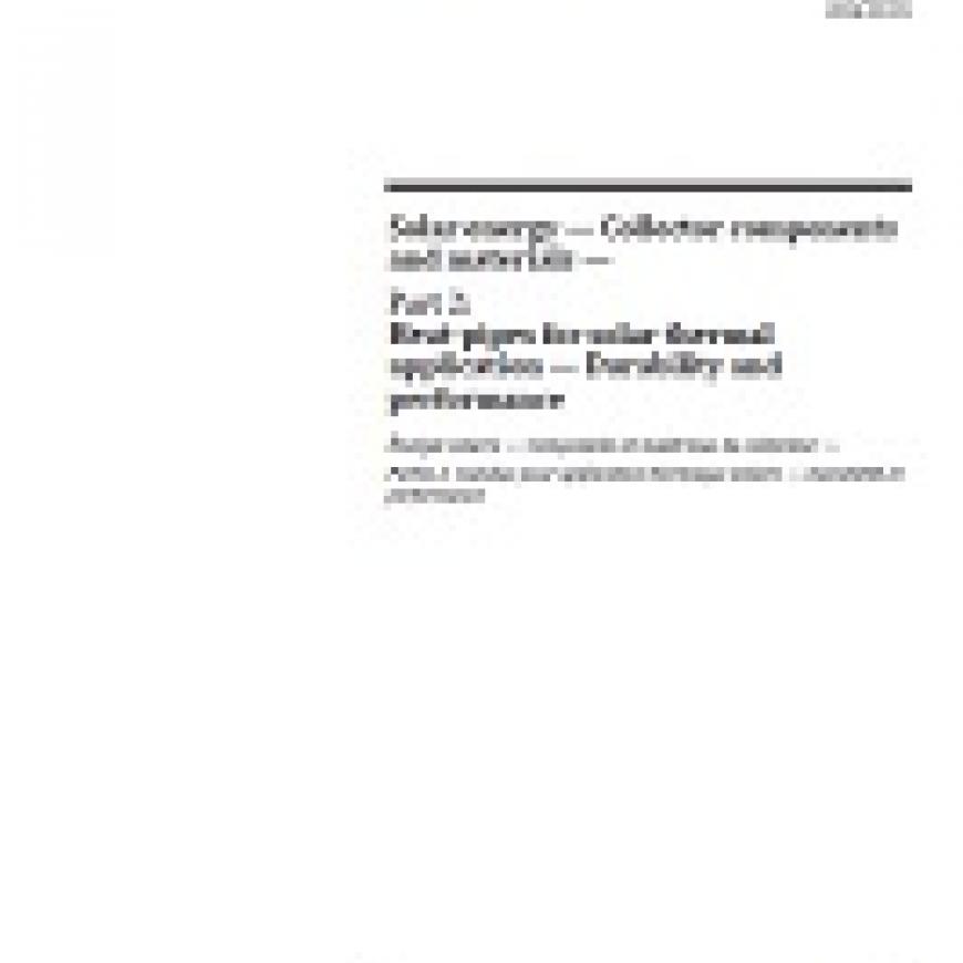 ISO 22975-2:2016 specifies definitions and test methods for durability and performance of heat-pipes for solar thermal application.