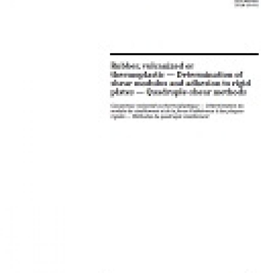 ISO 1827:2016 specifies methods for the determination of the modulus in shear and the strength of bonds of rubber to metal or other rigid plates, using rubber bonded between four parallel plates.