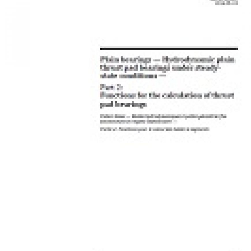 Plain bearings - Hydrodynamic plain thrust pad bearings under steady-state conditions - Part 2: Functions for the calculation of thrust pad bearingsstandard by International Organization for Standardization, 09/15/2016