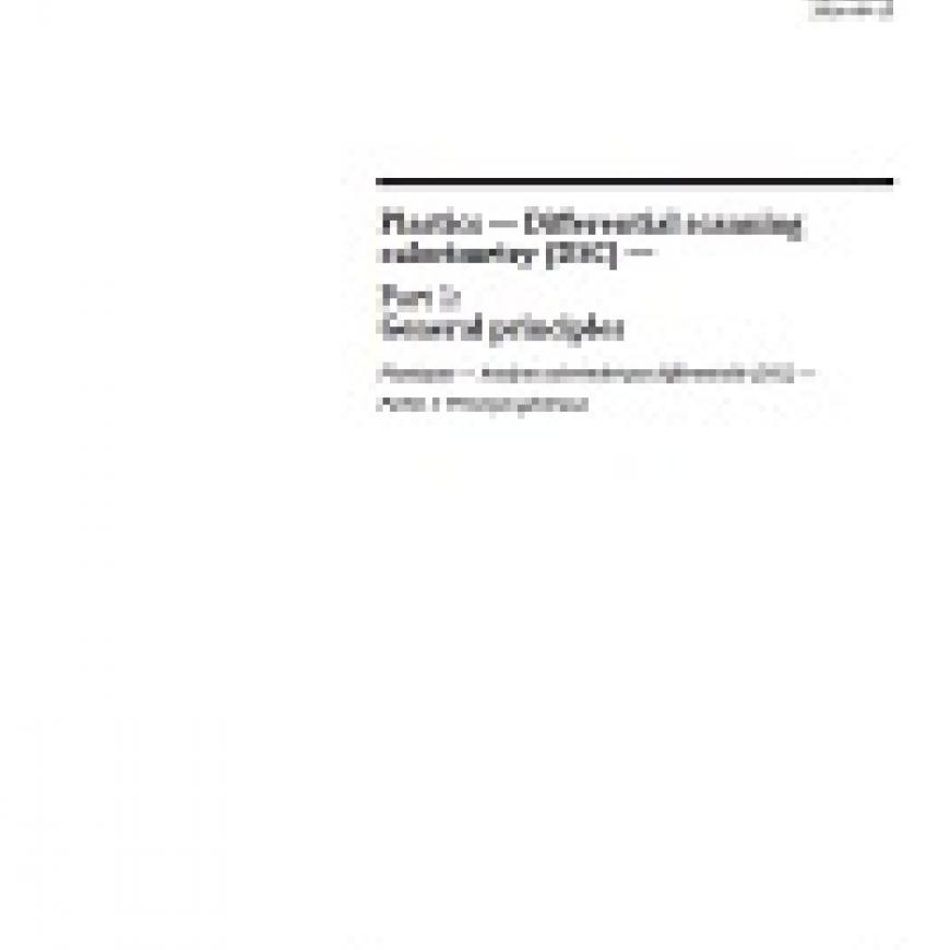 ISO 11357-1:2016 specifies several differential scanning calorimetry (DSC) methods for the thermal analysis of polymers and polymer blends, such as thermoplastics (polymers, moulding compounds and other moulding materials, with or without fillers, fibres or reinforcements), thermosets (uncured or cured materials, with or without fillers, fibres or reinforcements), and elastomers (with or without fillers, fibres or reinforcements).ISO 11357 is intended for the observation and measurement of various properties of, and phenomena associated with, the above-mentioned materials, such as physical transitions (glass transition, phase transitions such as melting and crystallization, polymorphic transitions, etc.), chemical reactions (polymerization, crosslinking and curing of elastomers and thermosets, etc.), the stability to oxidation, and the heat capacity.This part of ISO 11357 specifies a number of general aspects of differential scanning calorimetry, such as the principle and the apparatus, sampling, calibration and general aspects of the procedure and test report common to all following parts.