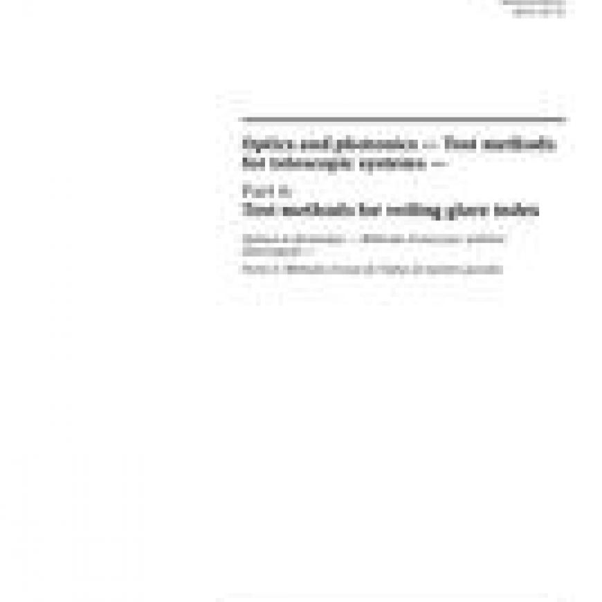 ISO 14490-6:2014 specifies the test methods for the determination of the veiling glare index of telescopic systems and observational telescopic instruments.