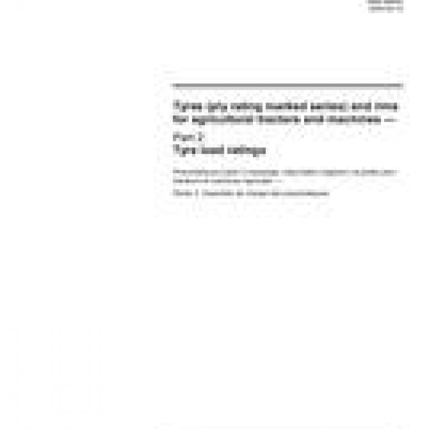 ISO 4251-2:2005 specifies load ratings for the ply rating marked series of tyres for agricultural tractors and machines. Tyre designation and dimensions, and approved rim contours, rim dimensions, and tyre classification and nomenclature are given in ISO 4251-1, ISO 4251-3 and ISO 4251-4 respectively.