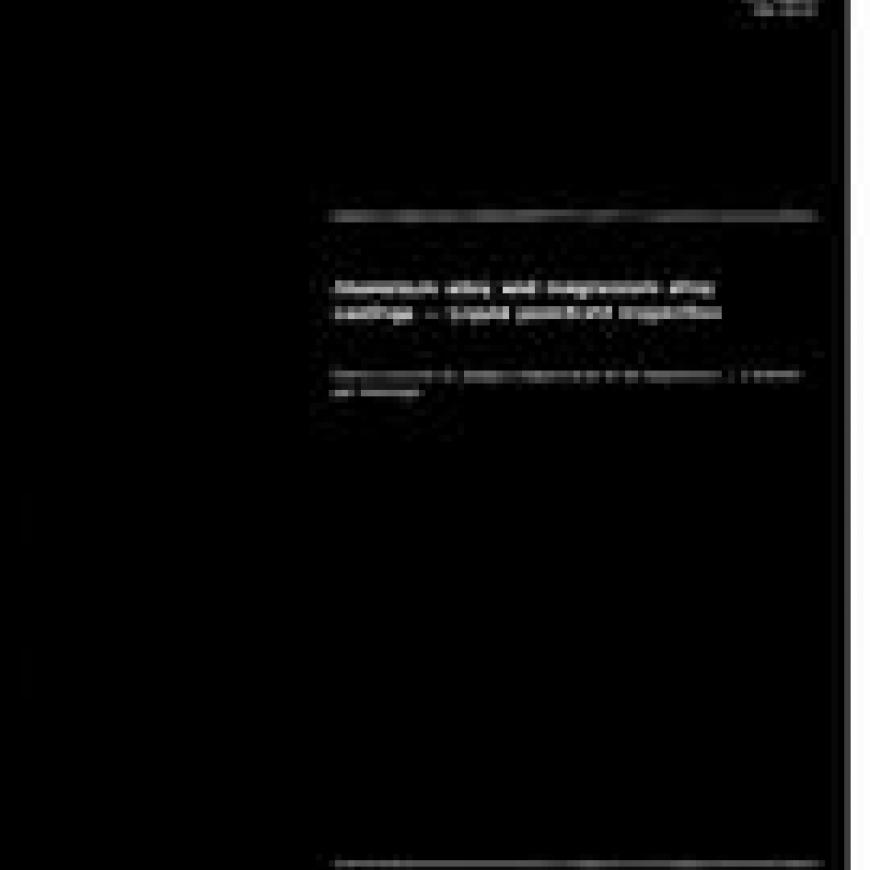 Specifies a method for liquid penetrant inspection of discontinuities rising to the surface of aluminium alloy and magnesium alloy products and castings. Also defines severity levels as a function of the nature and number of discontinuities present. Annex A gives some indication types.