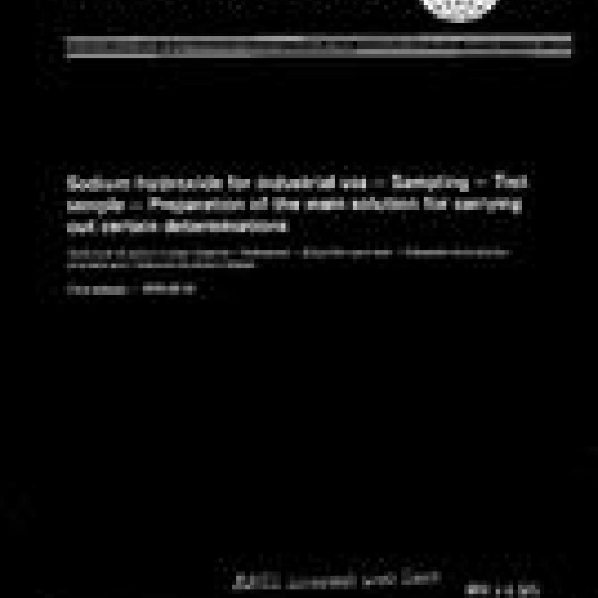 ISO 3195:1975 Sodium hydroxide for industrial use -- Sampling -- Test Sample -- Preparation of the main solution for carrying out certain determinations