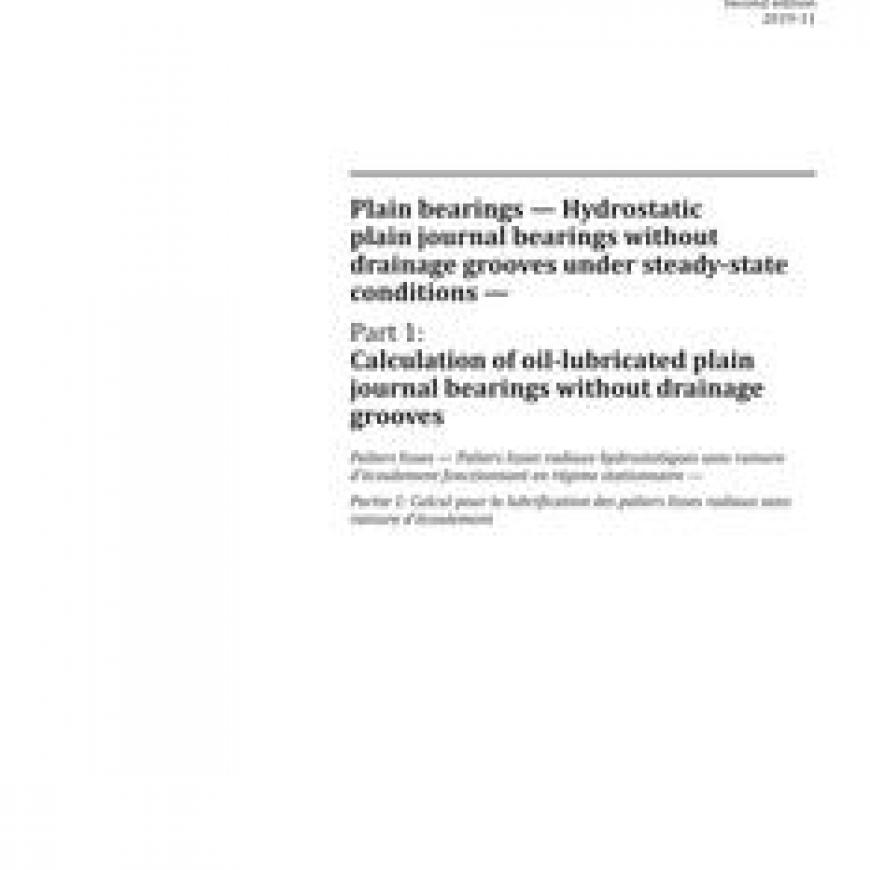 ISO 12168-1:2019 specifies a calculation method of oil-lubricated plain journal bearings without drainage grooves under steady-state conditions.