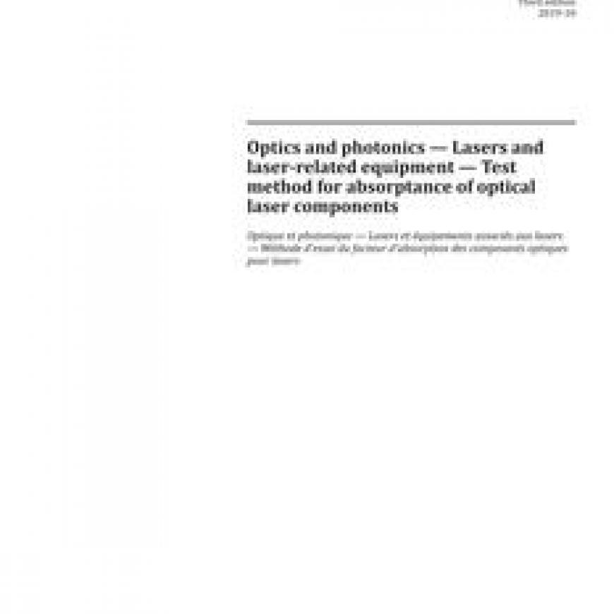 ISO 11551:2019 specifies procedures and techniques for obtaining comparable values for the absorptance of optical laser components.