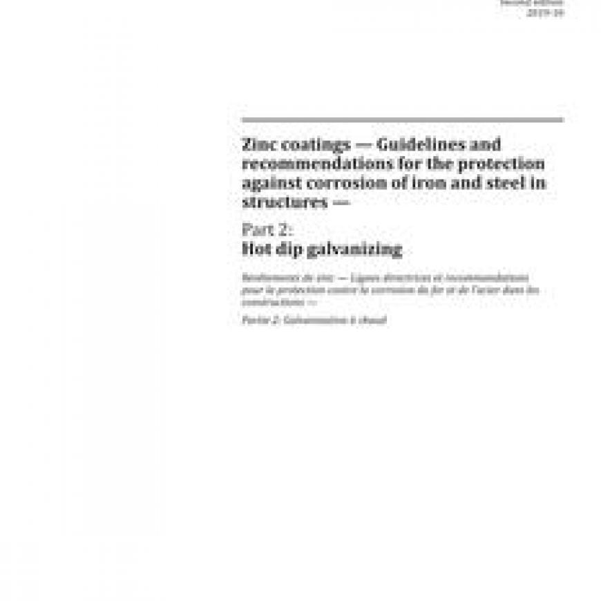 ISO 14713-2:2019 Zinc coatings - Guidelines and recommendations for the protection against corrosion of iron and steel in structures - Part 2: Hot dip galvanizing