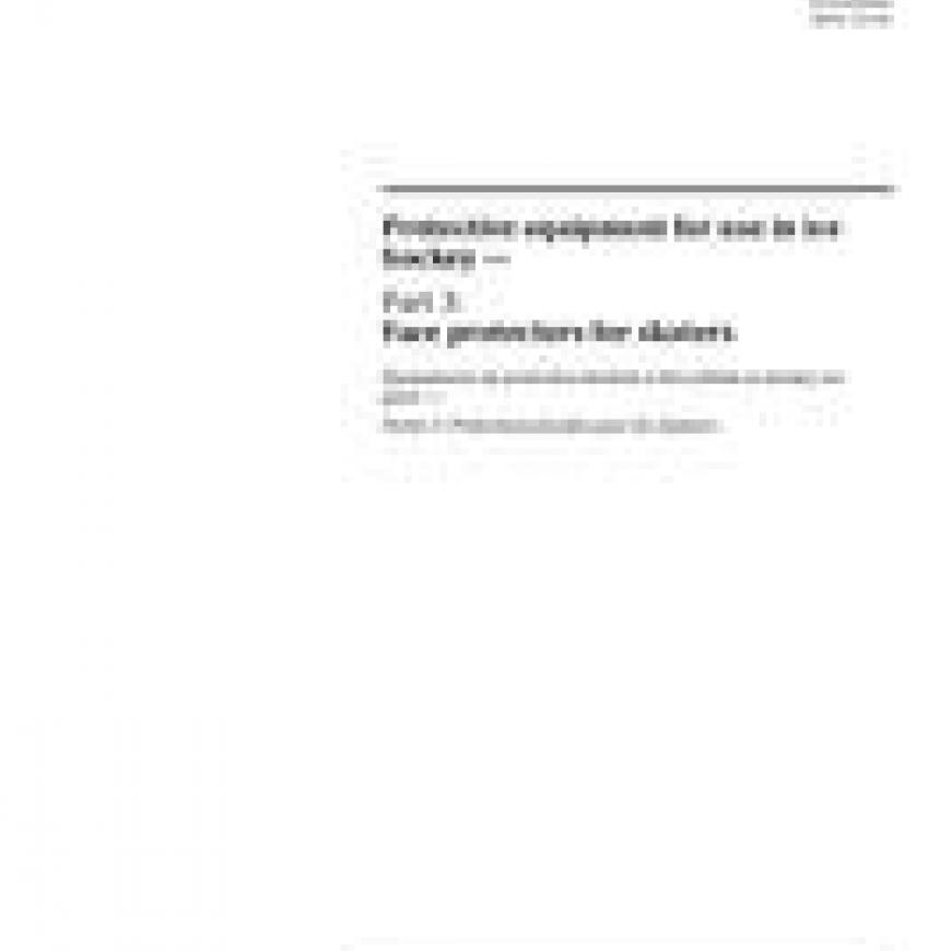 ISO 10256-3:2016 specifies performance requirements and test methods for face protectors (including visors) for use in ice hockey and is intended to be used in conjunction with ISO 10256-1.