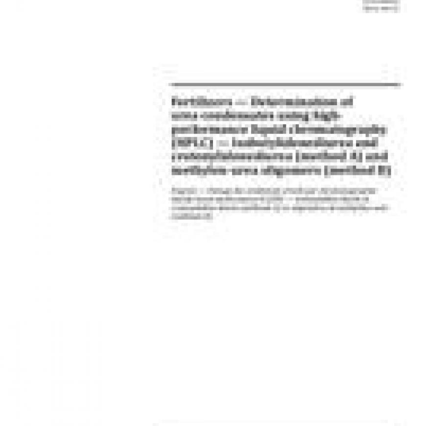 ISO 25705:2016 Fertilizers - Determination of urea condensates using high-performance liquid chromatography (HPLC) - Isobutylidenediurea and crotonylidenediurea (method A) and methylen-urea oligomers (method B)