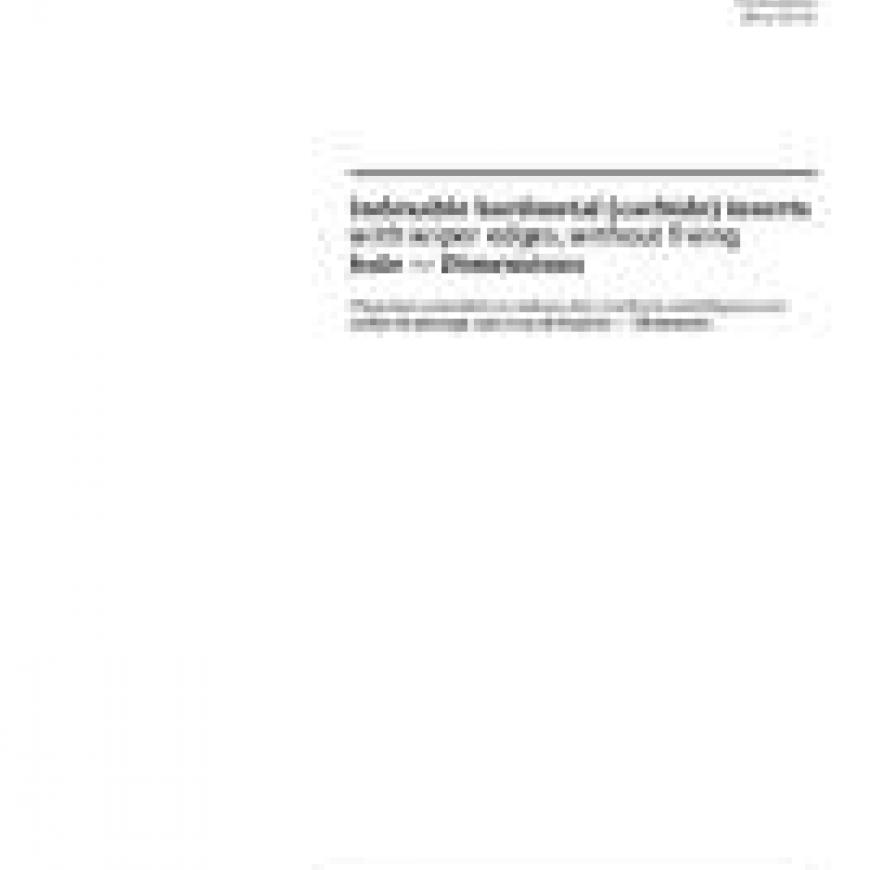 ISO 3365:2016 specifies the dimensions of indexable hardmetal (carbide) inserts with wiper edges, without fixing hole. These inserts are primarily intended to be mounted on milling cutters by top or wedge clamping.