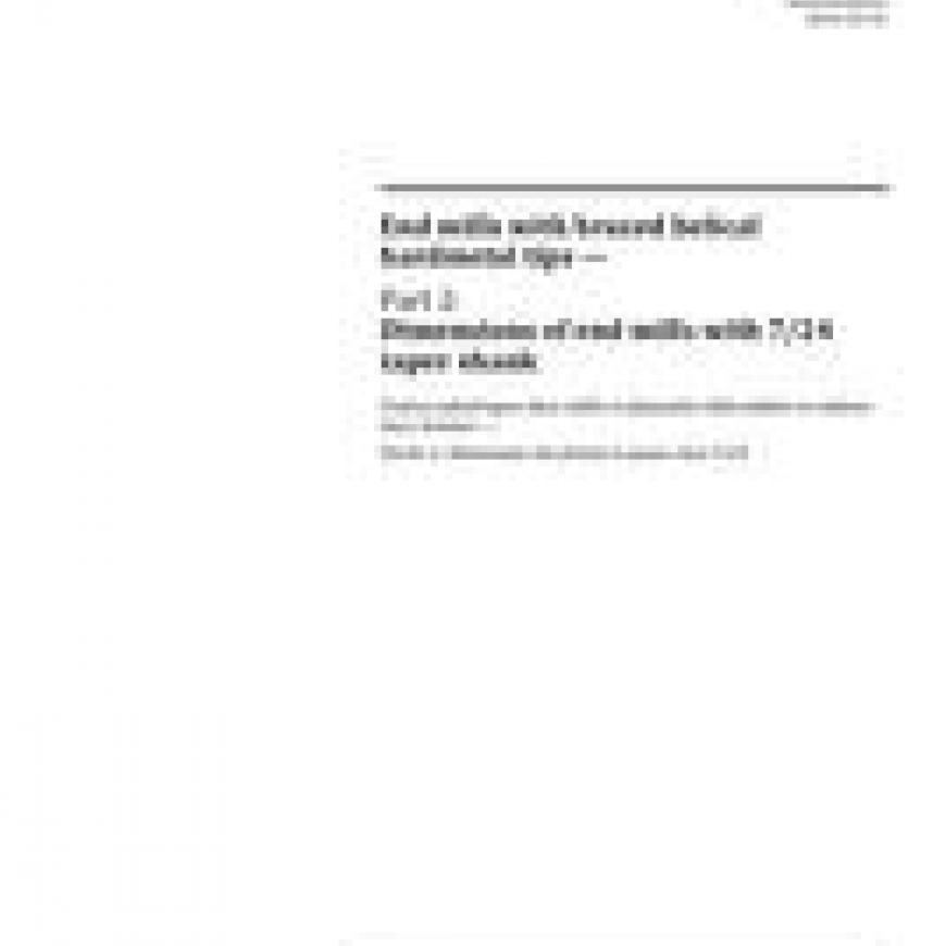 ISO 10145-2:2016 specifies the general dimensions of end mills with brazed helical hardmetal tips, with 7/24 taper shank.