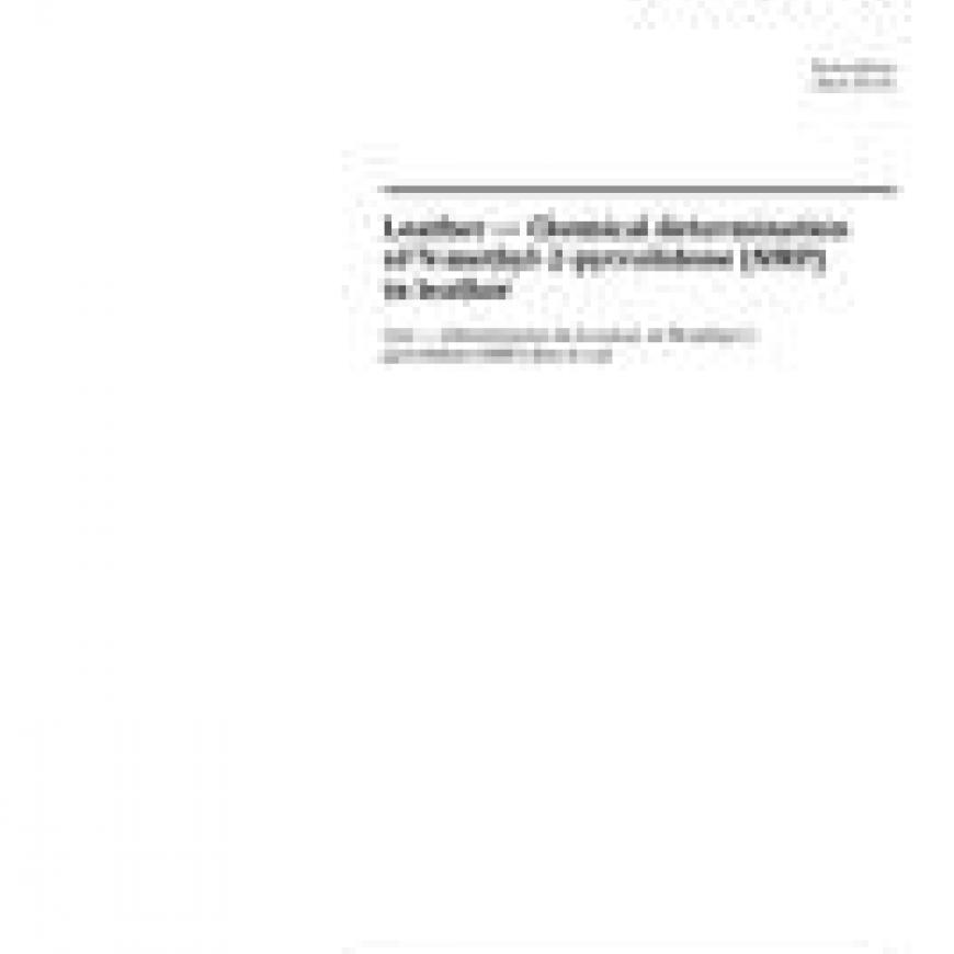 ISO 19070:2016 specifies a method to determine the amount of N-methyl-2-pyrrolidone (NMP) in leather and leather components.