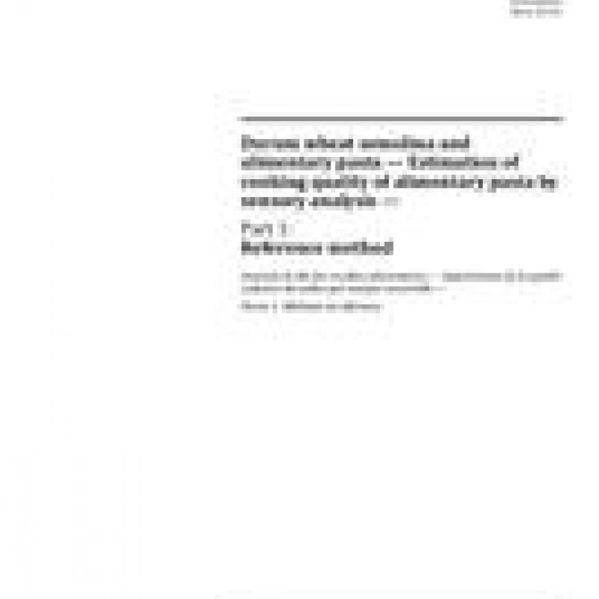 ISO 7304-1:2016 sets out a method for estimation by sensory analysis of the cooking quality of alimentary pasta. Estimation takes place through the evaluation of the following: