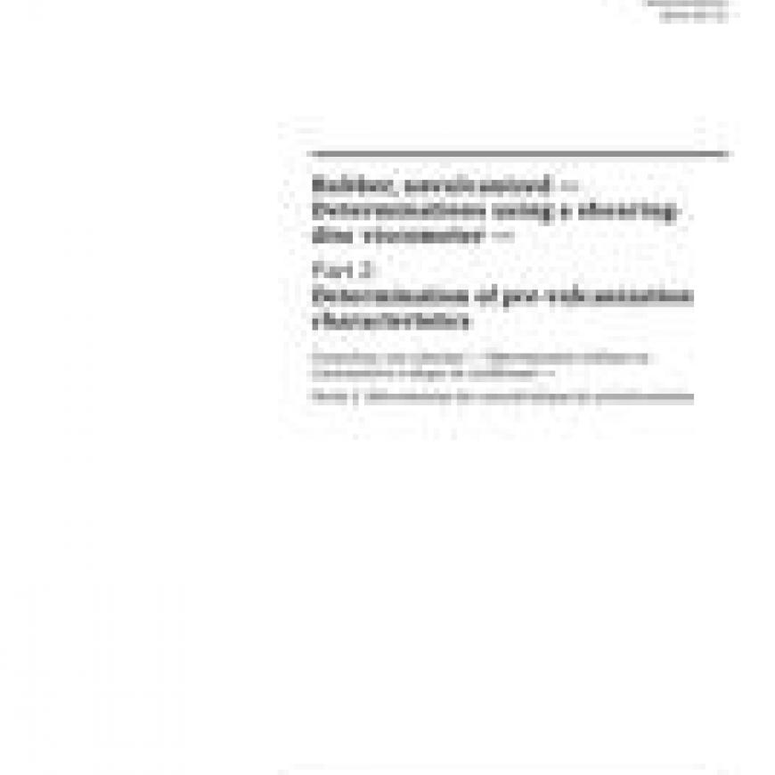 ISO 289-2:2016 specifies a method for determining the pre-vulcanization characteristics of compounded rubber.