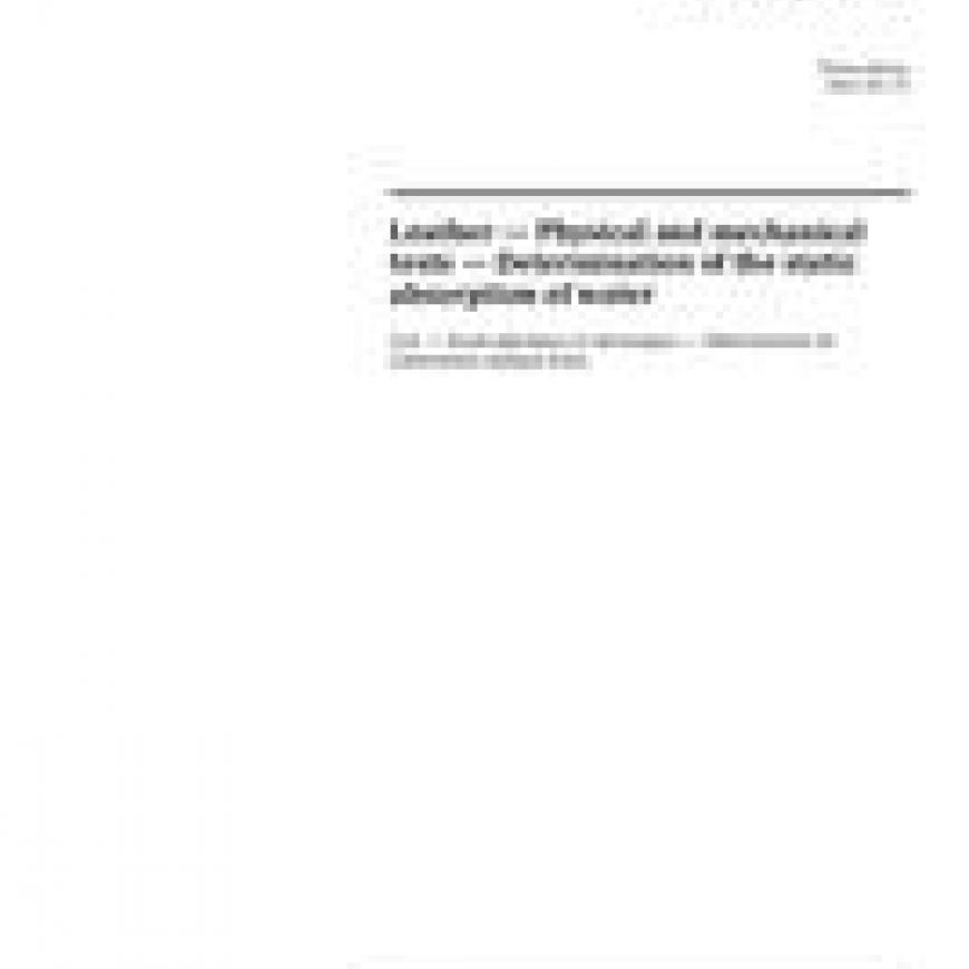 ISO 2417:2016 specifies a method for determining the water absorption of leather under static conditions. The method is applicable to all leather, particularly heavy leather.