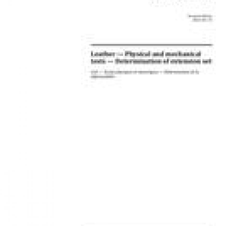 ISO 17236:2016 specifies a method for determining the extension set of leather. It is intended for use on upholstery leather but is applicable to all flexible leathers.