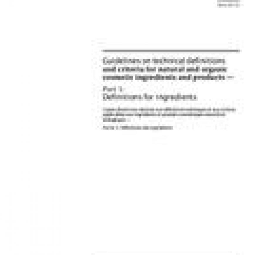 ISO 16128-1:2016 provides guidelines on definitions for natural and organic cosmetic ingredients.
