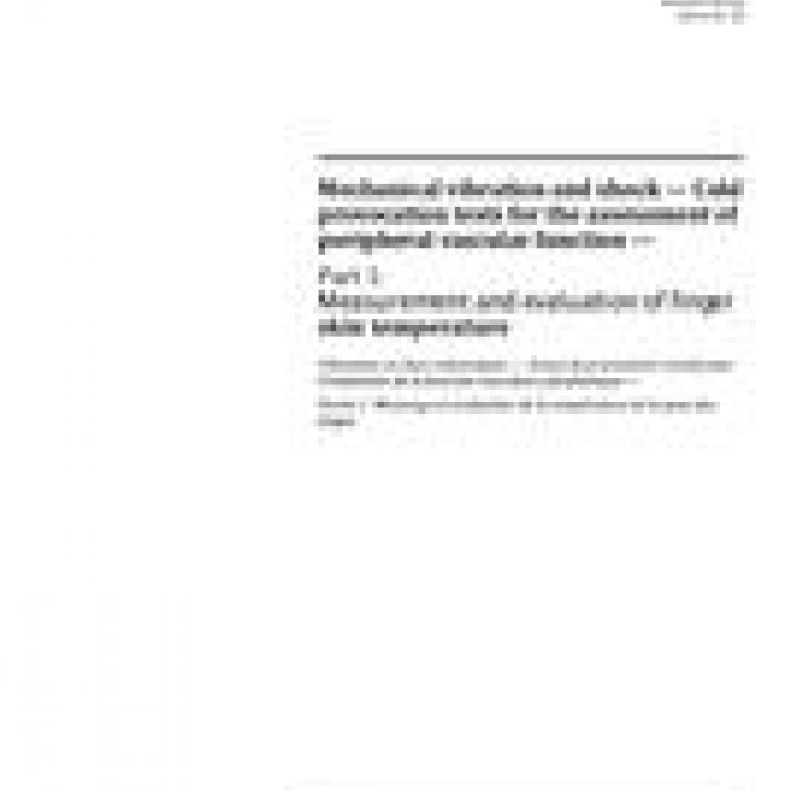 ISO 14835-1:2016 Mechanical vibration and shock - Cold provocation tests for the assessment of peripheral vascular function - Part 1: Measurement and evaluation of finger skin temperature