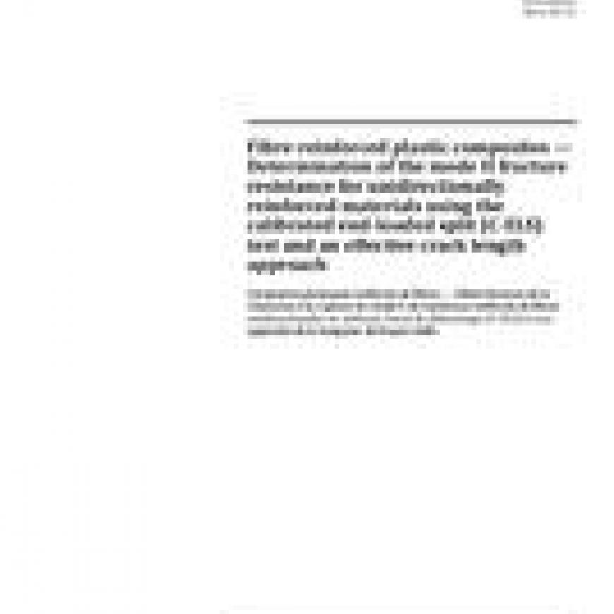 ISO 15114:2014 specifies a method for the determination of mode II shear load delamination resistance. GIIC, (critical energy release rate), of unidirectional fibre-reinforced plastic composites using the calibrated end-loaded split (C-ELS) test.