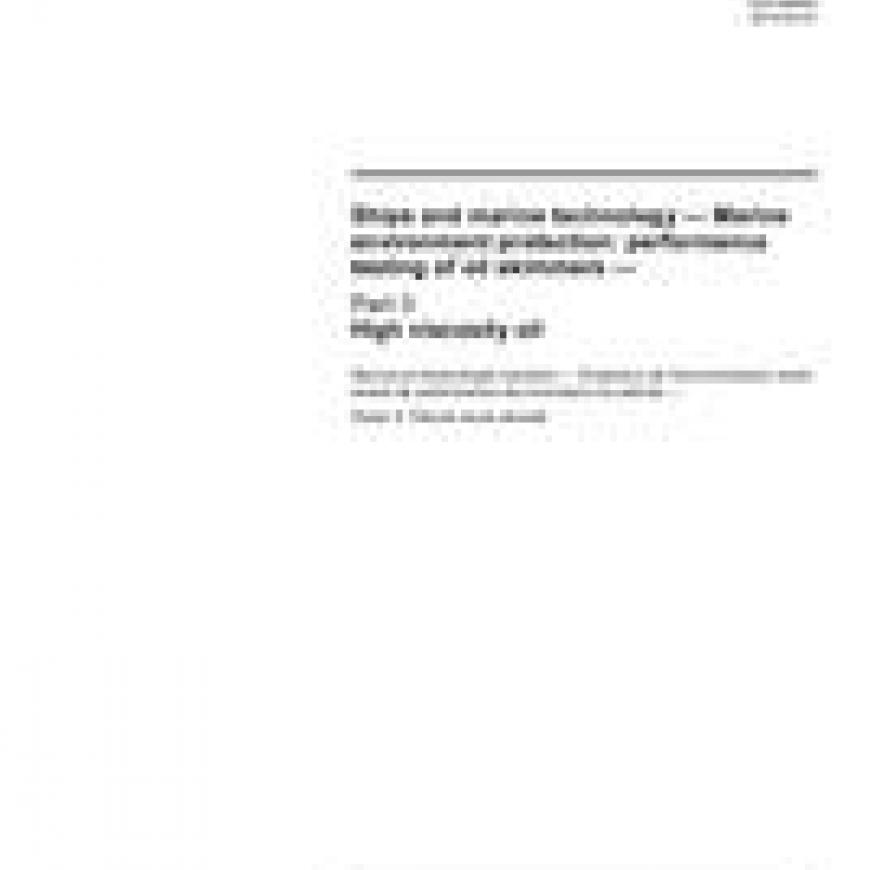 ISO 21072-3:2010 specifies a methodology for establishing quantitative performance data for oil skimmers for recovery of oil with high viscosity, so the end user can objectively judge, compare and evaluate the design and performance of different skimmers. The methodology applies to testing in a basin and requires control of oil properties and oil slick characteristics.