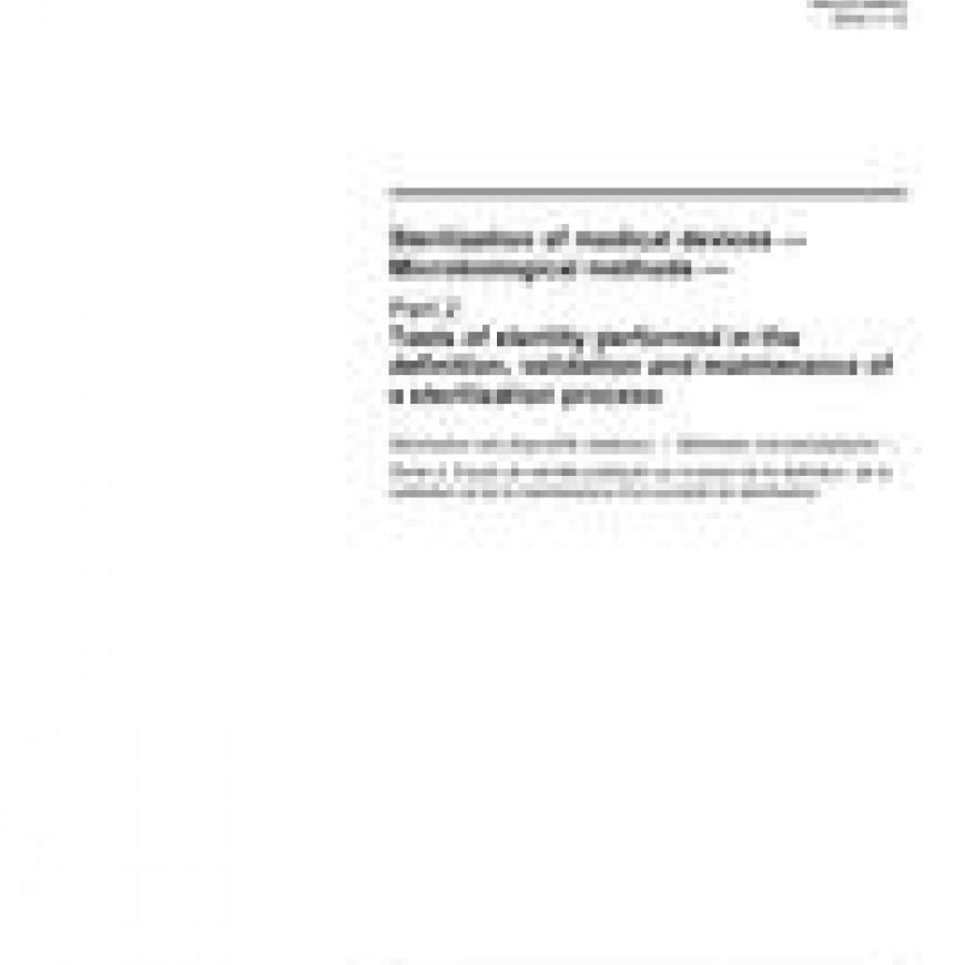 ISO 11737-2:2009 specifies the general criteria for tests of sterility on medical devices that have been exposed to a treatment with the sterilizing agent reduced relative to that anticipated to be used in routine sterilization processing. These tests are intended to be performed when defining, validating or maintaining a sterilization process.