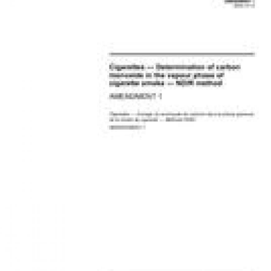 ISO 8454/Amd1:2009 Cigarettes - Determination of carbon monoxide in the vapour phase of smoke (NDIR method) - Amendment 1