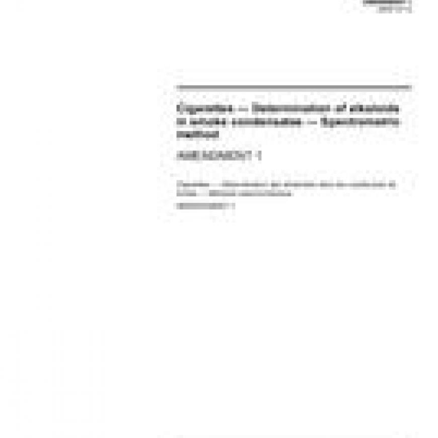 ISO 3400/Amd1:2009 Tobacco and tobacco products - Determination of alkaloids in cigarette smoke condensates - Spectrophotometric method - Amendment 1