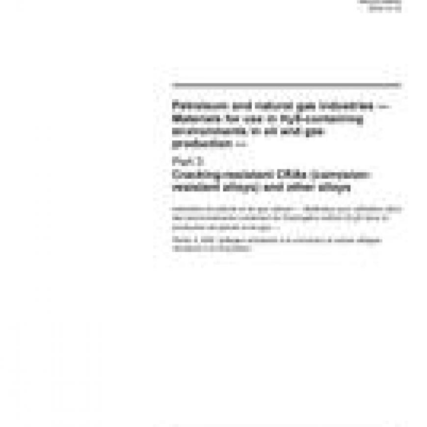 ISO 15156-3:2009 gives requirements and recommendations for the selection and qualification of CRAs (corrosion-resistant alloys) and other alloys for service in equipment used in oil and natural gas production and natural gas treatment plants in H2Scontaining environments, whose failure can pose a risk to the health and safety of the public and personnel or to the environment. ISO 15156-3:2009 can be applied to help to avoid costly corrosion damage to the equipment itself. It supplements, but does not replace, the materials requirements of the appropriate design codes, standards or regulations.