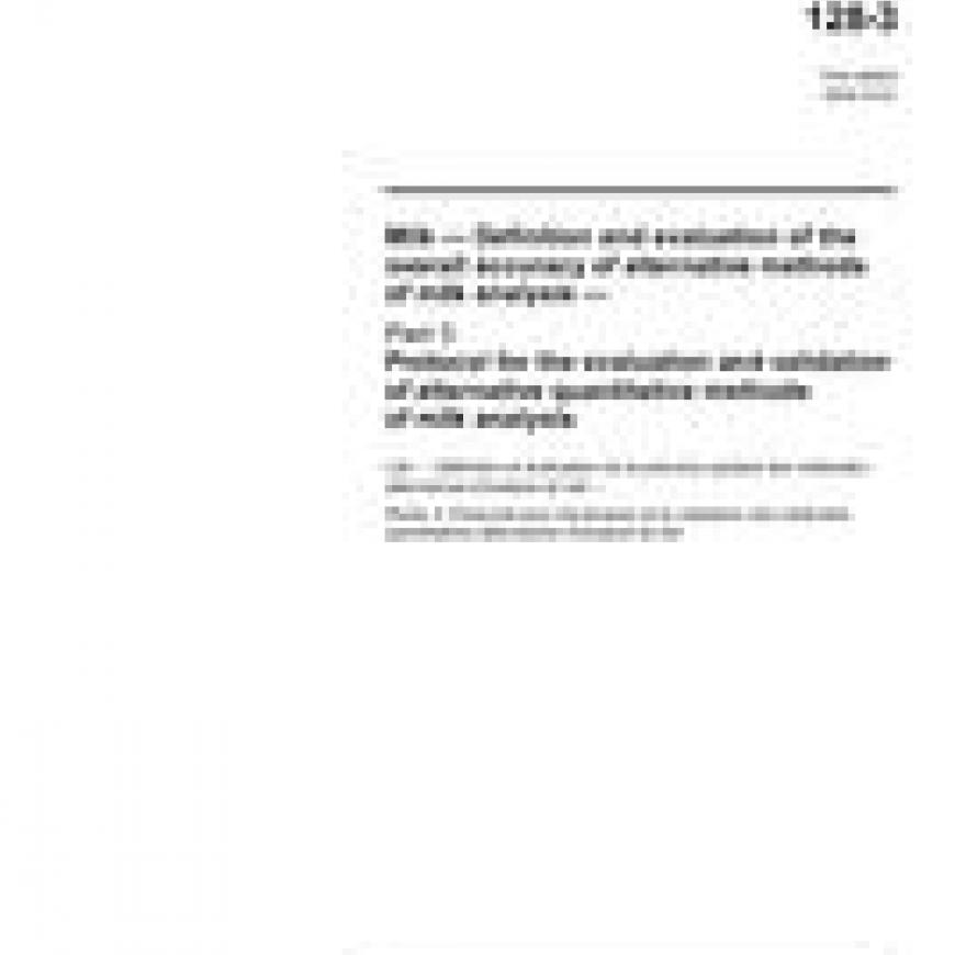 ISO 8196-3IDF 128-3:2009 specifies a protocol for the evaluation and validation of alternative quantitative methods of milk analysis.