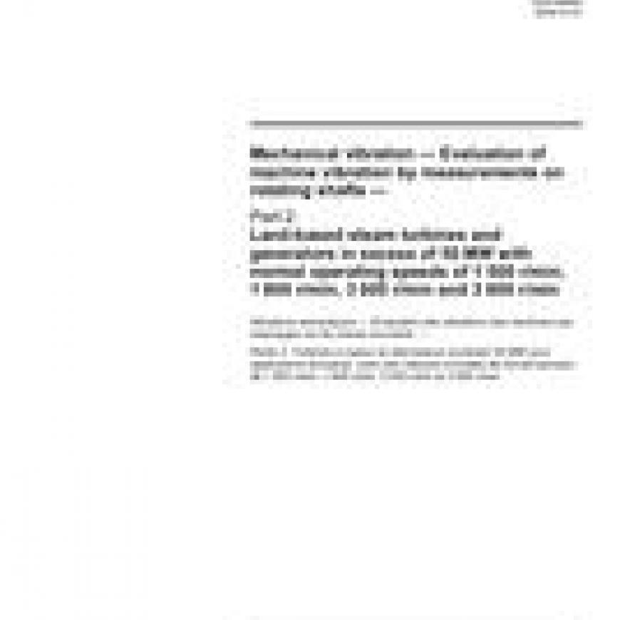ISO 7919-2:2009 is applicable to land-based steam turbines and generators with power outputs greater than 50 MW and a normal operating speed of 1 500 r/min, 1800 r/min, 3 000 r/min or 3 600 r/min.
