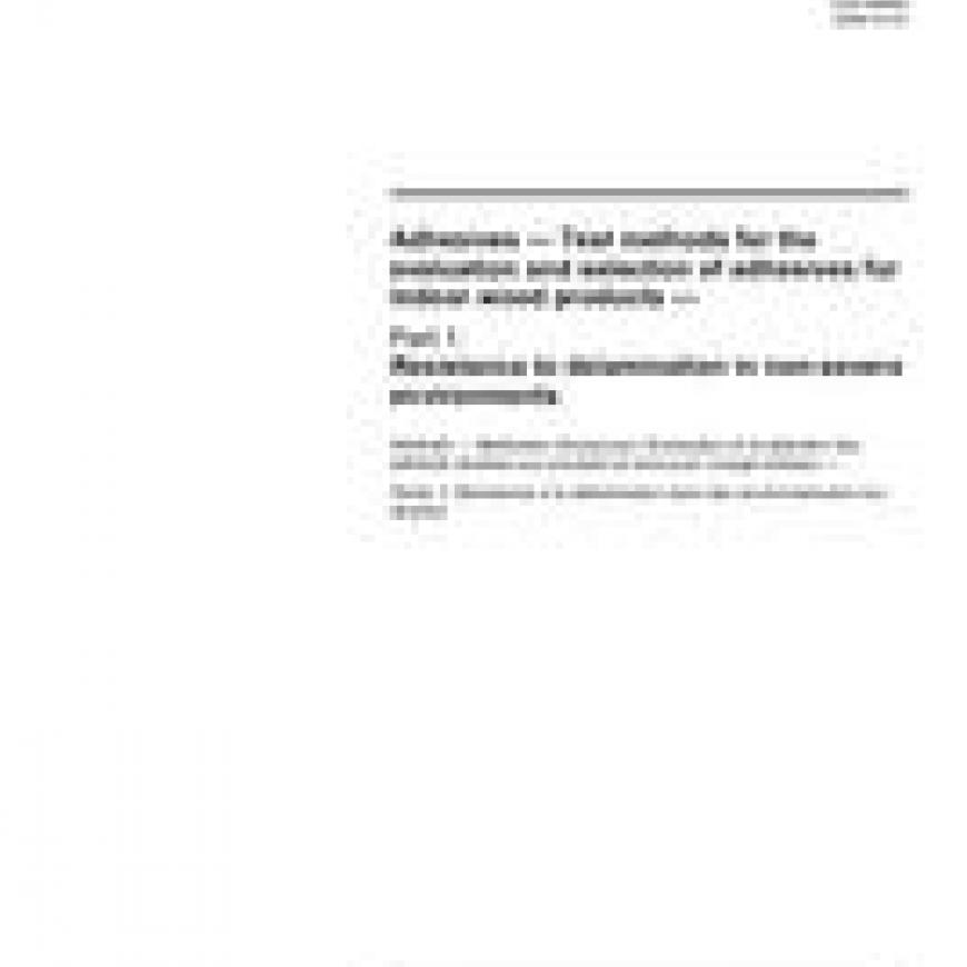 ISO 26842-1:2009 Adhesives - Test methods for the evaluation and selection of adhesives for indoor wood products - Part 1: Resistance to delamination in non-severe environments