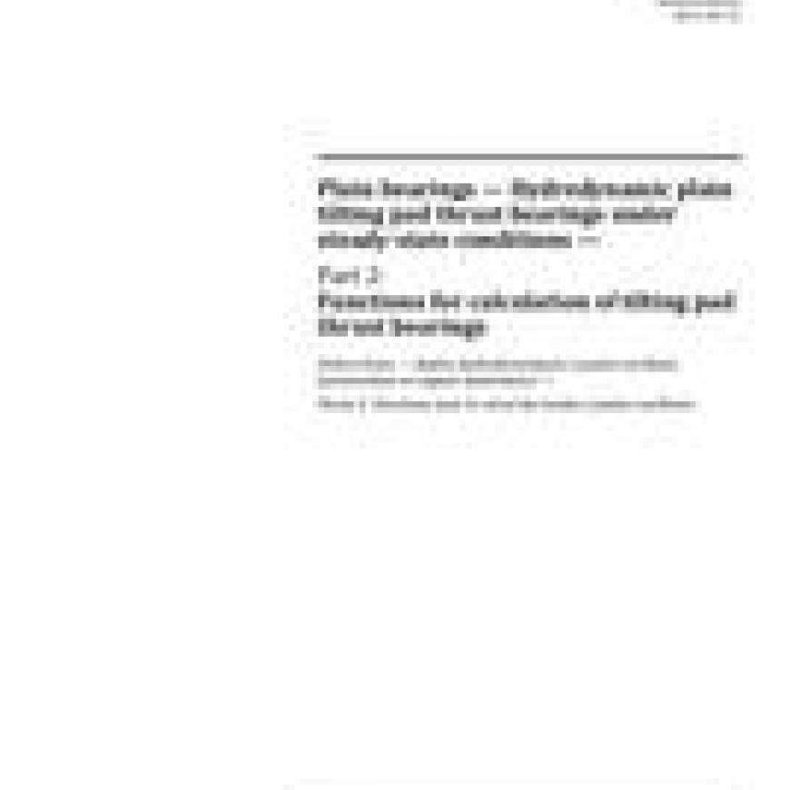 ISO 12130-2:2013 Plain bearings - Hydrodynamic plain tilting pad thrust bearings under steady-state conditions - Part 2: Functions for calculation of tilting pad thrust bearings