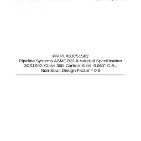 PIP PLX03CS1S02 Pipeline Systems ASME B31.8 Material Specification 3CS1S02, Class 300, Carbon Steel, 0.0625" (1/16") C.A., Non-Sour, Design Factor = 0.6 [New Practice]