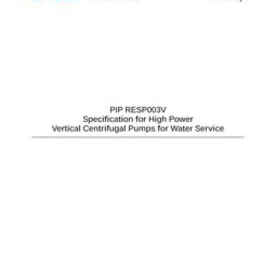 PIP RESP003V Specification for High Power Vertical Centrifugal Pumps for Water Service [Technical Revision]