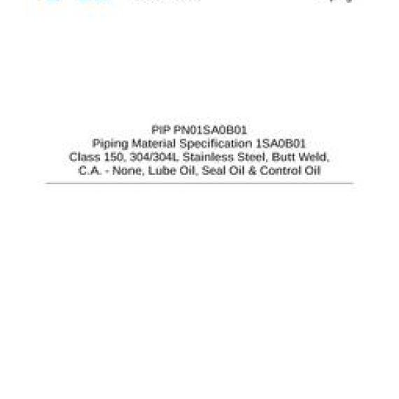 PIP PN01SA0B01 Piping Material Specification 1SA0B01 Class 150, 304/304L Stainless Steel, Butt Weld, C.A. - None, Lube Oil, Seal Oil & Control Oil [Complete Revision]