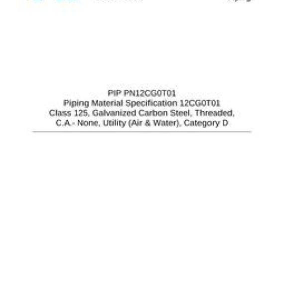 PIP PN12CG0T01 Piping Material Specification 12CG0T01 Class 125, Galvanized Carbon Steel, Threaded, C.A. - None, Utility (Air & Water), Category D [Complete Revision]