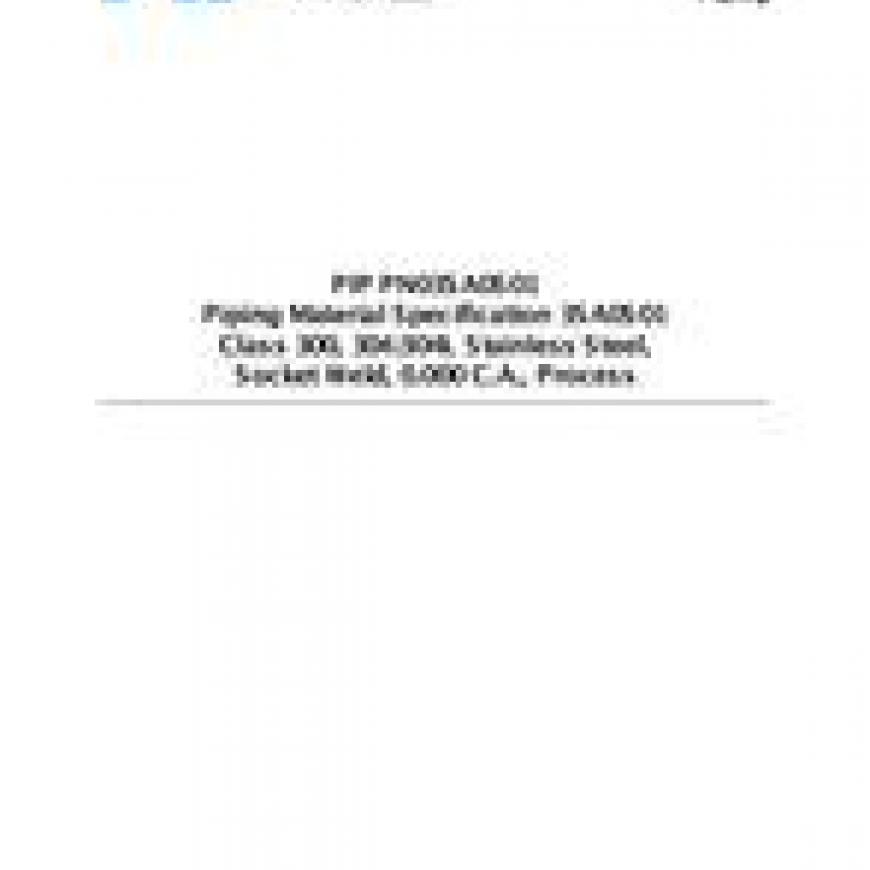 PIP PN03SA0S01 Piping Material Specification 3SA0S01 Class 300, 304/304L Stainless Steel, Socket Weld, 0.000" C.A. Process [Complete Revision]