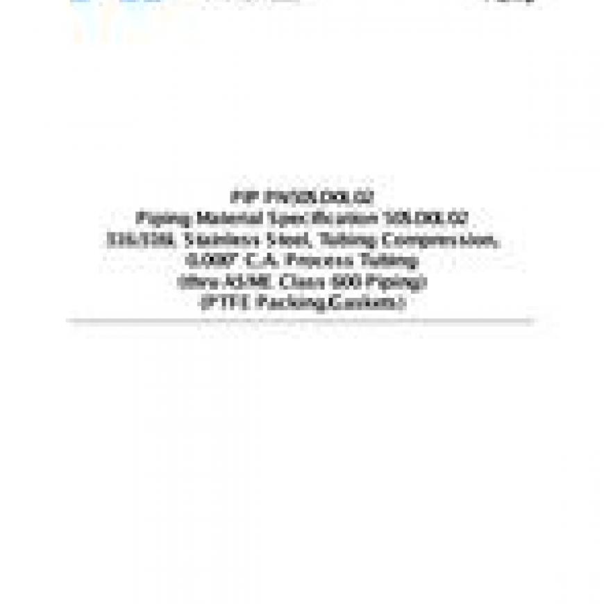 PIP PN50SD0L02 Piping Material Specification 50SD0L02, 316/316L Stainless Steel, Tubing Compression, 0.000" C.A. Process Tubing (thru ASME Class 600 Piping) (PTFE Packing/Gaskets) [Complete Revision]