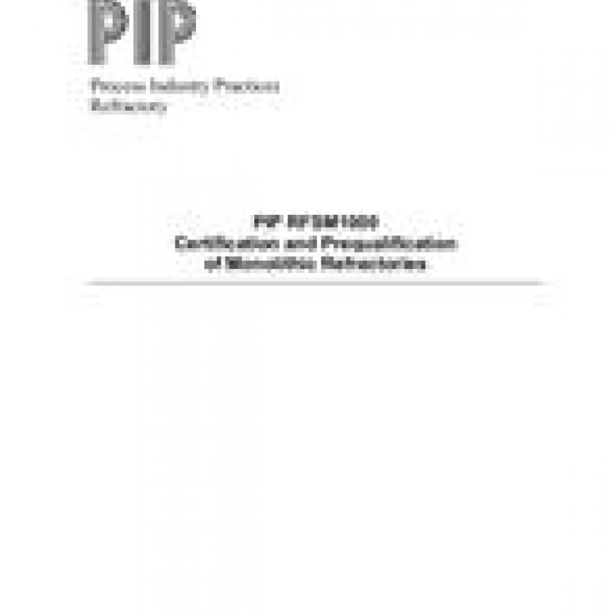 This Practice describes the requirements for certification and prequalification of the refractory materials used to construct monolithic refractory linings in process equipment and piping. This Practice provides a basis for selection, purchase, and quality control of refractory materials before installation. This Practice describes the material property, testing, documentation, storage, and shipping requirements for commercial refractory materials used to construct monolithic refractory linings in process equipment and piping. These materials can be installed by gunning, casting, pumping, or hand packing as specified.