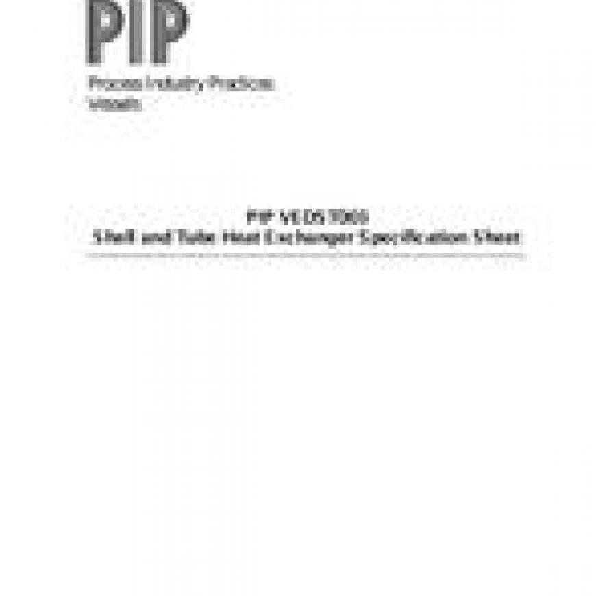 The purpose of this Practice is to provide instruction and/or direction to designers for preparation of the Shell and Tube Heat Exchanger Specification Sheet (hereafter referred to as the Specification Sheet). The Specification Sheet, prepared in conjunction with PIP VECV1001 and PIP VESV1002, completes a specification suitable for obtaining comprehensive bids and subsequent purchase of shell and tube heat exchangers. Note that PIP VEDV1003, Vessel Drawing/Data Sheet and Instructions, does not apply to shell and tube heat exchangers.