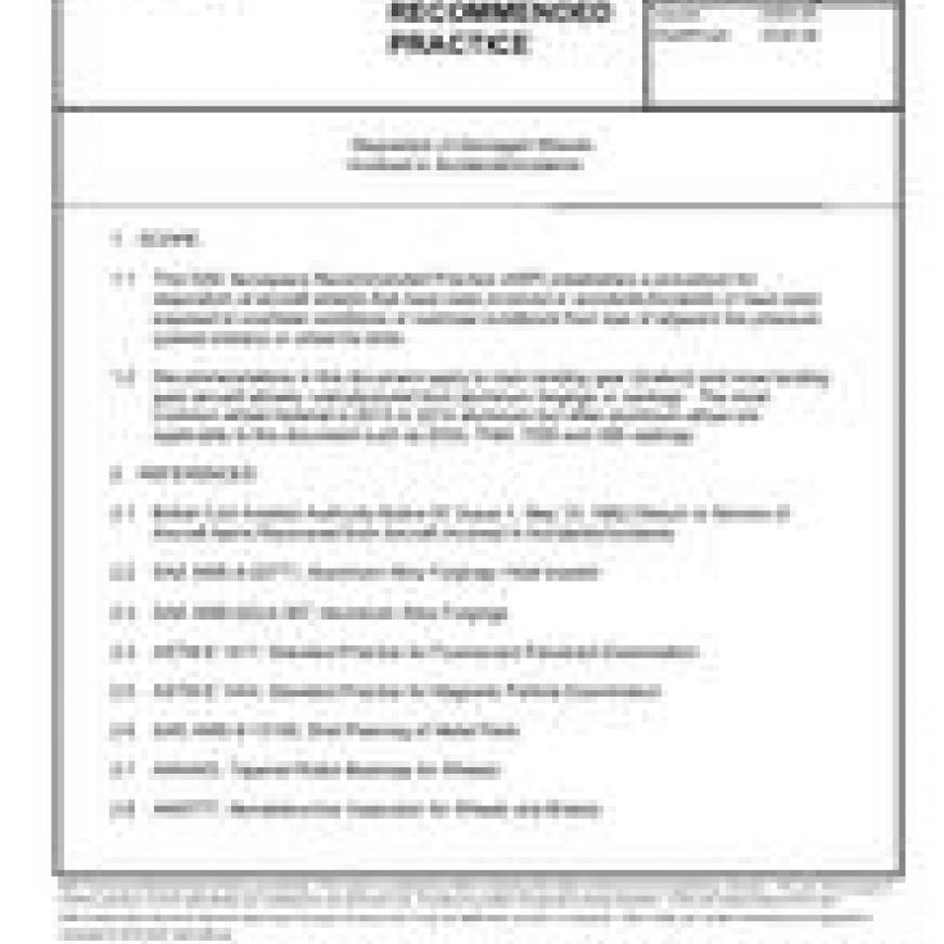 This SAE Aerospace Recommended Practice (ARP) establishes a procedure for disposition of aircraft wheels that have been involved in accidents/incidents or have been exposed to overheat conditions or overload conditions from loss of adjacent tire pressure (paired wheels) or wheel tie bolts.